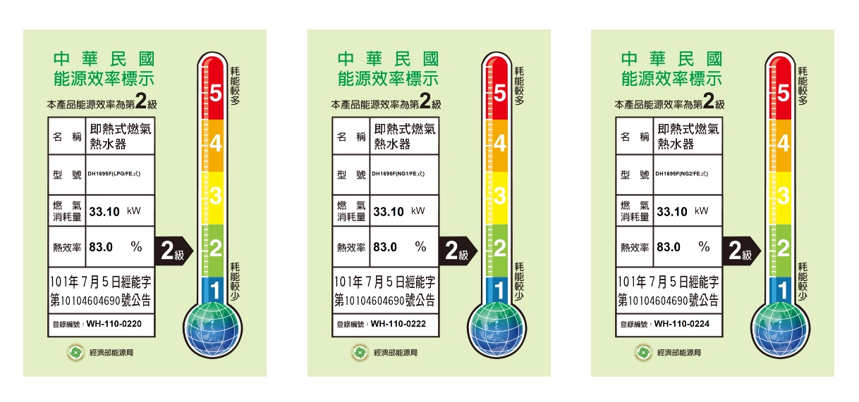 | 熱效率 | 液化瓦斯 | 83.0% (能源效率第2級) | |